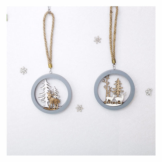 Santa Claus Deer New Year Natural Wood Christmas Tree Ornaments